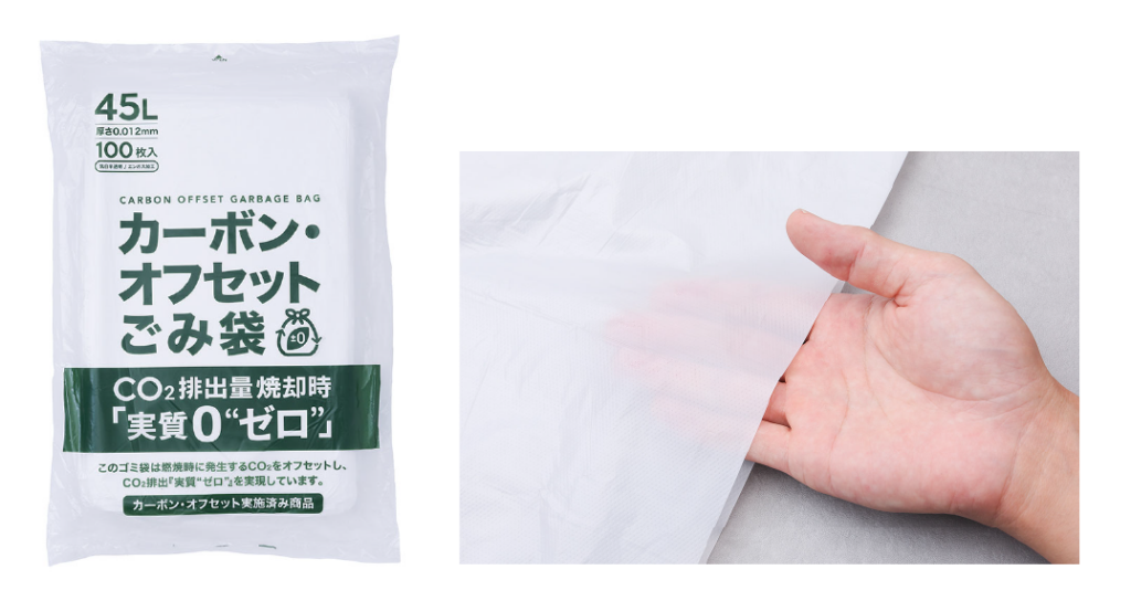 こうした状況を背景に、当社はこの度、廃棄焼却時に生じるCO2を実質ゼロにする「カーボン・オフセットごみ袋」を新たに発売いたします。
